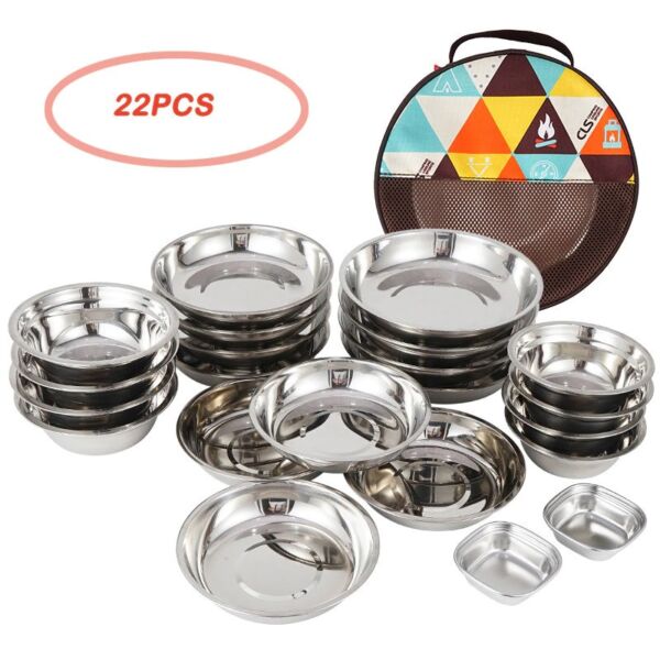 1 review for 22PCS Outdoor Camping Stainless Steel Tableware Set