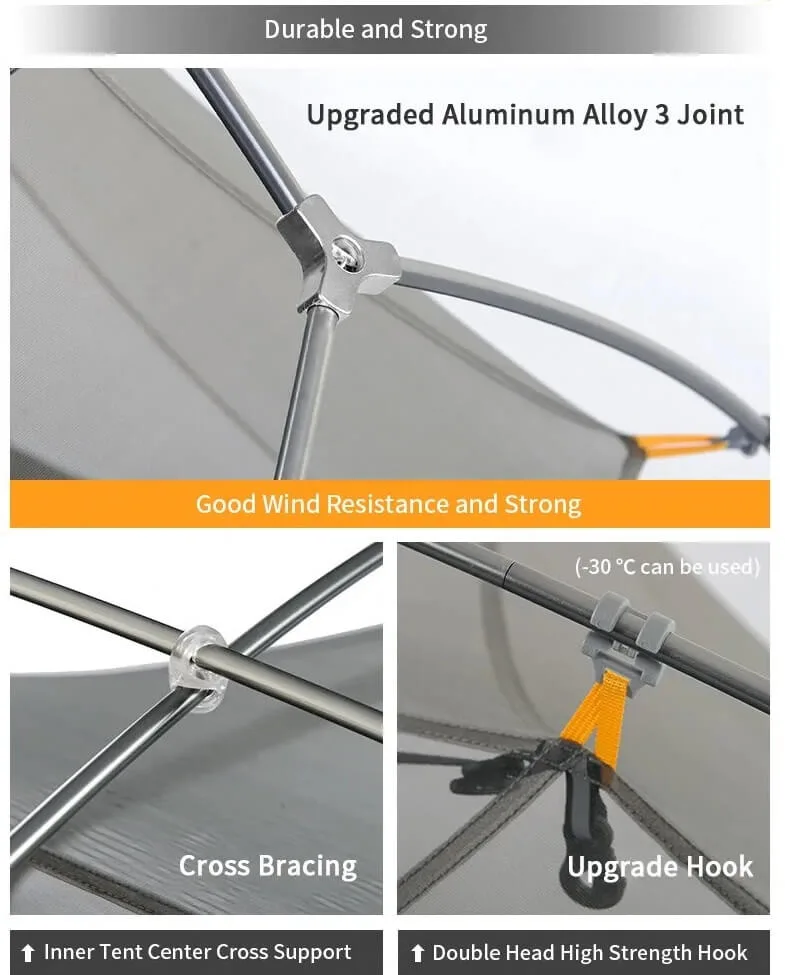 Inner Tent: B3 mesh+20DNylon+Anti-fleece silk (4000mm waterproof index)