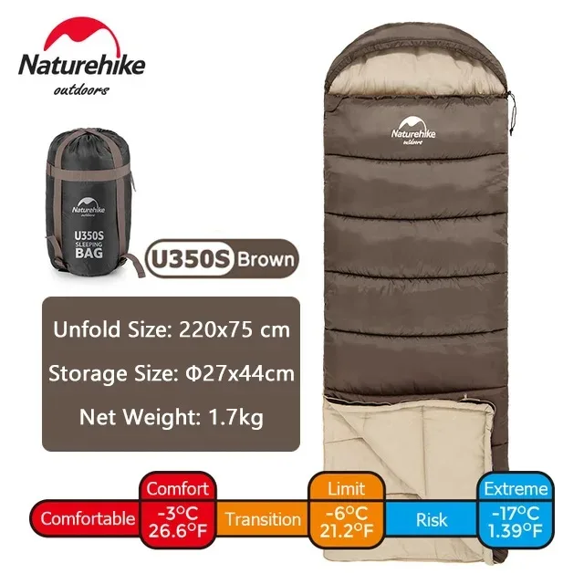 New Upgrade 4 Seasons Naturehike U350s Sleeping Bag is great for general camping and off-roading trips. It features a hood and built in draft collar to keep you extra cosy on those chilly nights.